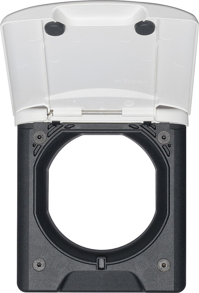Universal-Außensteckdose mit Magnetverschluss, z.B. als Kabel- oder Schlauchdurchreiche.