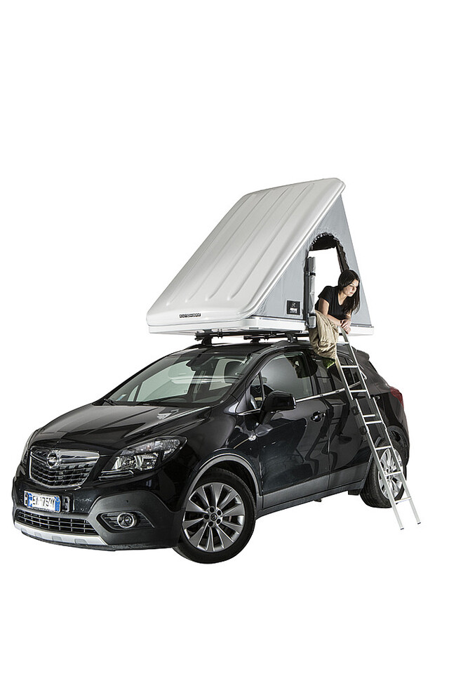 Die technischen Merkmale lassen sich auch sehen. Bei geschlossener Dachschale beträgt die Höhe gerade einmal 25 cm. Die Zeltserie Made in Italy besteht aus GFK, dass sehr wärmeisolierend und leicht zu reparieren ist. Die hochwertige Verarbeitung und das leichte und elegante Design des Zeltes eignet sich sowohl für Kleinwagen als auch SUV, Liefer- und Geländewagen.