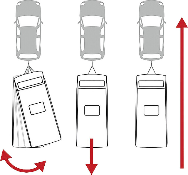- Sofort bremst der Anhänger automatisch ab. Der Fahrer spürt von dieser Korrektur fast nichts.