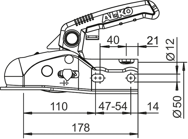 In der geschlossenen Stellung wird zusätzlich die grüne Sicherheitsanzeige durch die Kugelkupplung des Pkw´s herausgedrückt und somit sichtbar. Sie signalisiert dem Bediener nochmals, dass der Anhänger sicher mit dem Pkw verbunden ist. Eine Scheinverriegelung wird somit verhindert. Die Fahrt kann beginnen.