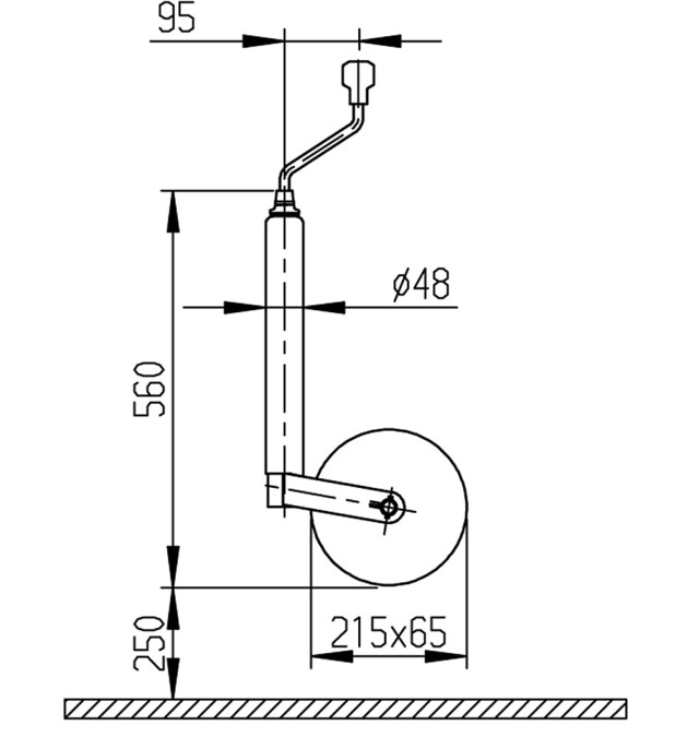 - Rad (mm): 215 x 65 Vollgummi