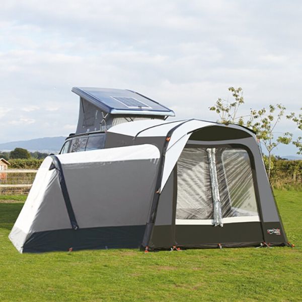 Erweitern Sie Ihr Reisemobilzelt Zirkon mit dem passenden Anbau und schaffen Sie im Handumdrehen mehr Platz für Komfort und Organisation beim Campen. Der Anbau fügt sich perfekt in das durchdachte Design des freistehenden Zirkon-Heckzelts ein und verwandelt Ihr Zelt in eine noch vielseitigere Campinglösung – ideal als zusätzlicher Schlafbereich.