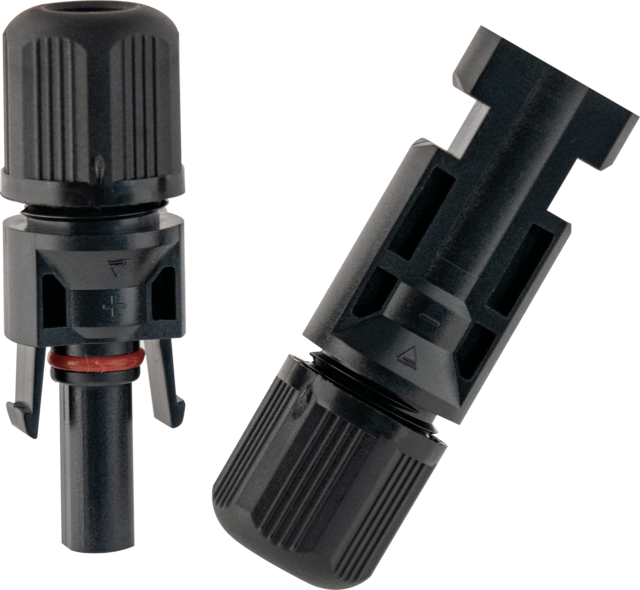 Wasserdichte Steckverbinder im MC4-Format für Solarmodule. Mit diesen Steckverbindern können Sie die gewünschte Kabellänge je nach Installation anpassen.