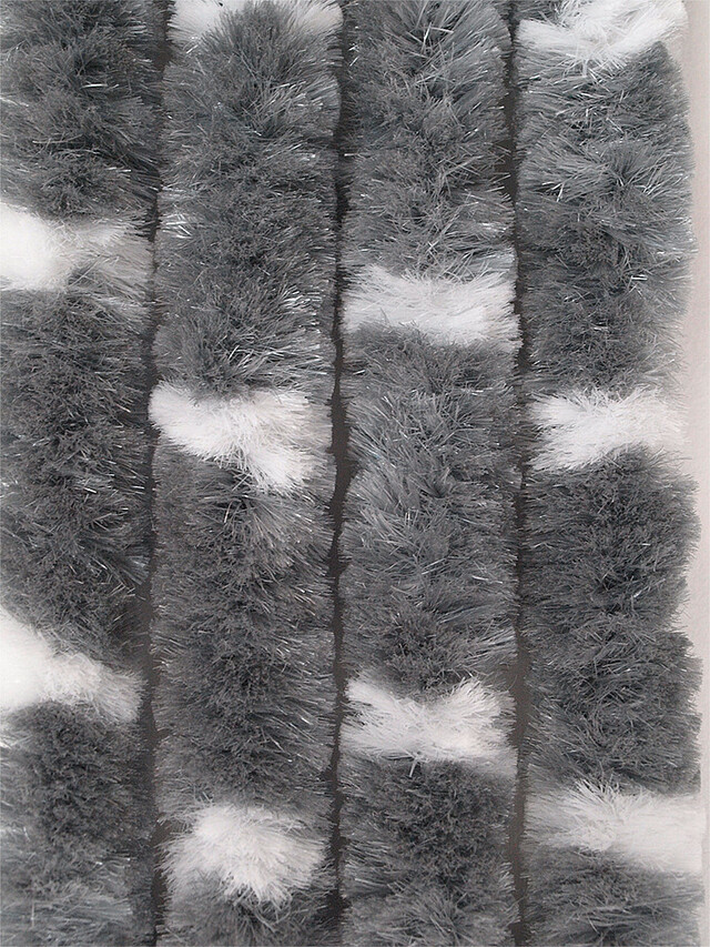 Sehr schöner, praktischer Türvorhang. Die einzelnen bauschigen Stränge der Flauschvorhänge (14 Stück bei 56 cm Breite und 25 Stück bei 100 cm Breite) sind auf einer Kunststoffschiene (Rahmenbreite 4 cm) fertig montiert.