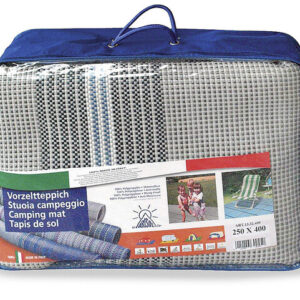 Der ideale Teppich für Zelte, Vorzelte, Terrassen und Balkone. Aus strapazierfähigem Polypropylen-Bändchengewebe, wiegt ca. 500 g/m².