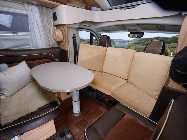 Relax Sofa Bank. Universal passende Bankauflage für die Vordersitze Ihres Reisemobils, passend für alle Fahrzeuge, mit drehbaren Sitzen, auf den Fahrgestellen von Fiat Ducato, MB Sprinter, Ford Transit und MAN TGE / VW Crafter. Mit nur wenigen Handgriffen gestalten Sie die entgegen der Fahrtrichhtung gedrehten Vordersitze in eine bequeme Relax-Oase zum Lesen, oder gemütlichem Sitzen. Ein zusätzlich gewonnener Sitzplatz bietet Platz für Gäste. Der kuschelweiche Velours-Stoff ist samtweich und hauptsympathisch. Er ist ohne großen Aufwand abnehm- und waschbar.