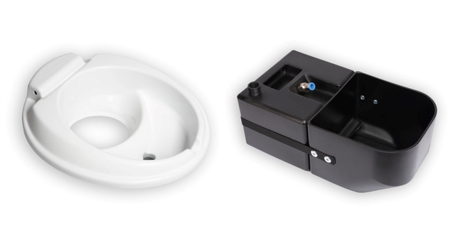 Das Oberteil der Bowl Ihrer Chemietoilette wird durch das Arwinger KassettentrenntoilettenKit Sitzteil ersetzt. Der Umbau kann anhand der mitgelieferten Anleitung ohne Fachkenntnisse selbst durchgeführt werden. Das Sitzteil sorgt für die Trennung von Festem und Flüssigem.