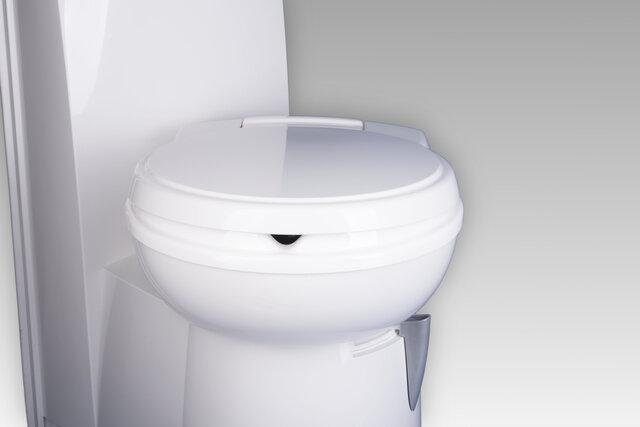 Nach dem Umbau der Bowl werden Brille und Deckel der Chemietoilette am neuen Sitzteil befestigt und Ihre Thetford-Toilette sieht so gut aus wie vorher.