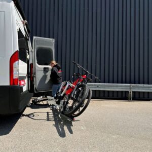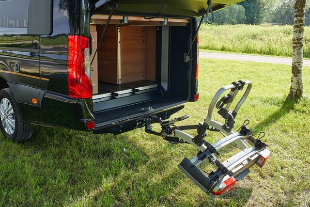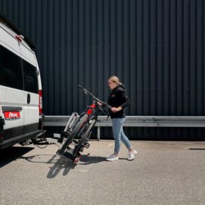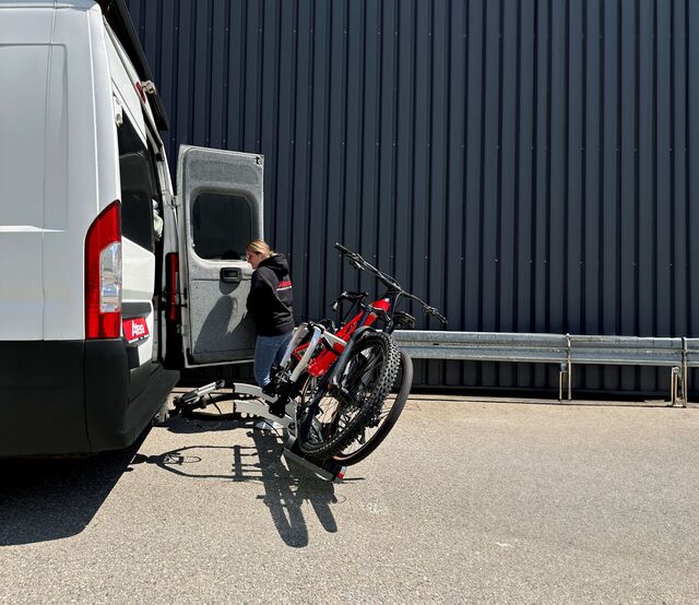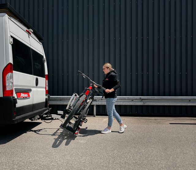 Der neue Atera Fahrradträger Strada EVO RV setzt Maßstäbe in Sachen Flexibilität und Benutzerfreundlichkeit – mit Schwerpunkt im Segment der Campingfahrzeuge. Der großzügige Abstand zwischen Stützbügel und Fahrzeug gewährleistet eine komfortable Nutzung, ohne dass der Fahrradlenker eingedreht werden muss. Ein besonderes Merkmal ist der weit ausziehbare Rollenauszug, der in Kombination mit der innovativen Positionierung des Stützbügels das Öffnen zahlreicher Flügeltüren und großer Heckklappen selbst im beladenen Zustand ermöglicht.