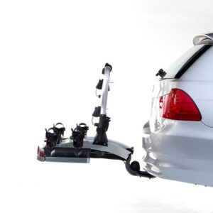 Dieser Anhängerkupplungsträger bietet Platz für zwei Fahrräder und lässt sich optional problemlos auf drei Räder erweitern. Mit einer maximalen Zuladung von 60 kg bei drei Fahrrädern kombiniert der Strada EVO RV hohe Belastbarkeit mit eleganter Funktionalität. Die abnehmbaren Abstandshalter bieten in Verbindung mit dem robusten Aluminium-Bügel optimalen Halt für verschiedene Fahrradtypen, einschließlich E-Bikes und Modelle mit Carbon-Rahmen.