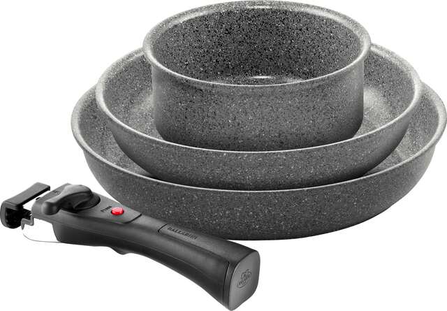 Entdecke die ultimative Vielseitigkeit in deiner Küche mit deinem BALLARINI Torre Set: Pfannen, Casserole + abnehmbarer Griff! Torre erlaubt die platzsparende Aufbewahrung, denn das Stapeln deines Kochgeschirrs ist ohne Griff gleich viel leichter. Das Kochgeschirr verträgt Temperaturen bis zu 230°C. Es ist mit einer langlebigen Ceraforce® Granitium Keramikbeschichtung ausgestattet und wird ohne PFAS hergestellt. Die Beschichtung ist bis zu dreimal haltbarer als unsere bisherigen Keramikbeschichtungen* und bietet dir hervorragende Antihaft-Eigenschaften. Der Radiant Induktionsboden sorgt für eine schnelle, gleichmäßige Wärmeverteilung. Der Griff ist mit Silikoneinlagen ausgestattet. Er schützt dein Kochgeschirr vor Kratzern und trägt bis zu 10 kg Inhalt. Ein unverzichtbares Tool für die neue Küchen-Orga in deiner cucina italiana!
