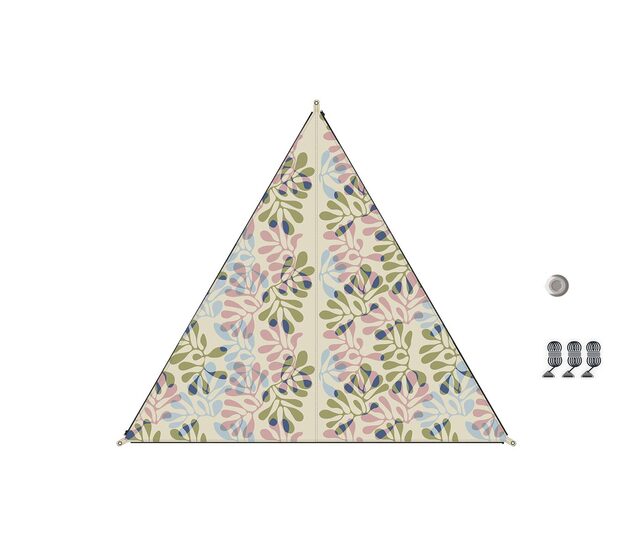 | Lieferumfang | 1 Sonnensegel, 1 Tragetasche mit Kordelzug, 3 Abspannleinen mit Aluminium Dreilochspanner inkl. Beutel, Gestänge-Tasche und Grundplatte für optionales Gestänge |