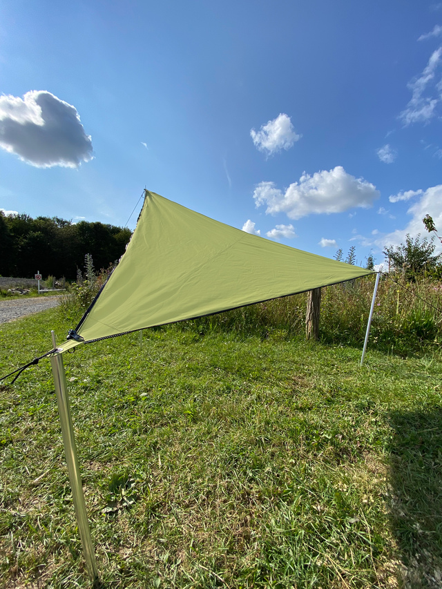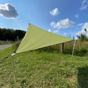 Die gleichschenklige Dreieckskonstruktion und die verstärkte Eckenkonstruktion ermöglichen ein optimales Abspannen des Sonnensegels.