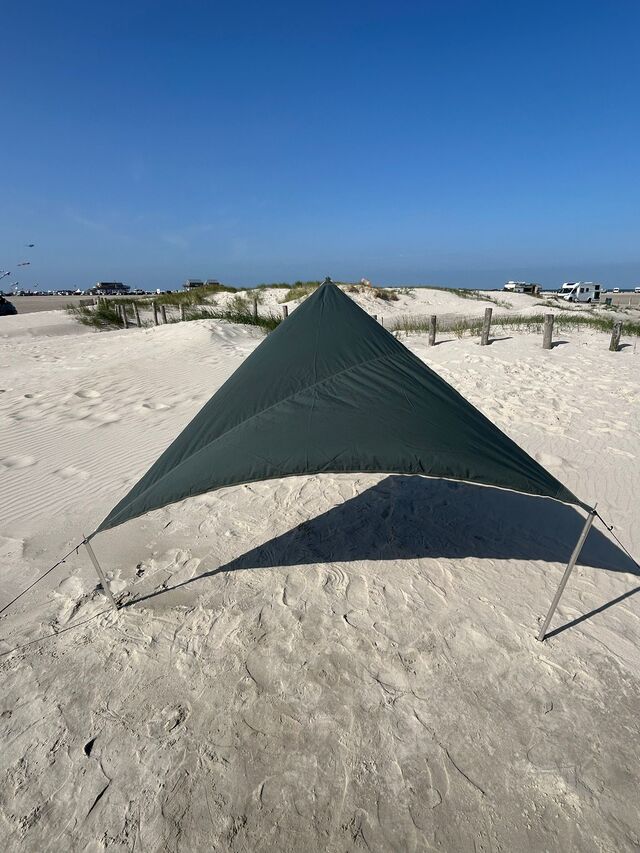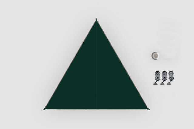 | Lieferumfang | Inklusive 1 Sonnensegel, 1 Tragetasche mit Kordelzug, 3 Abspannleinen mit Aluminium Dreilochspanner inkl. Beutel, Gestänge-Tasche und Grundplatte für optionales Gestänge |