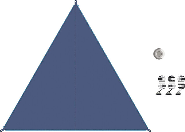 | Lieferumfang | Inklusive 1 Sonnensegel, 1 Tragetasche mit Kordelzug, 3 Abspannleinen mit Aluminium Dreilochspanner inklusive Beutel, Gestänge-Tasche, Grundplatte für optionales Gestänge |
