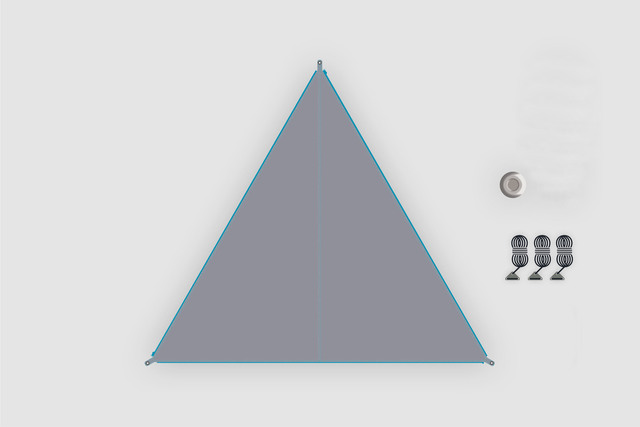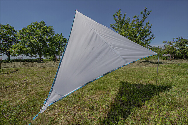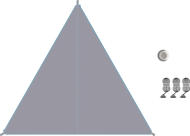 | Lieferumfang | Inklusive 1 Sonnensegel, 1 Tragetasche mit Kordelzug, 3 Abspannleinen mit Aluminium Dreilochspanner inklusive Beutel, Gestänge-Tasche, Grundplatte für optionales Gestänge |