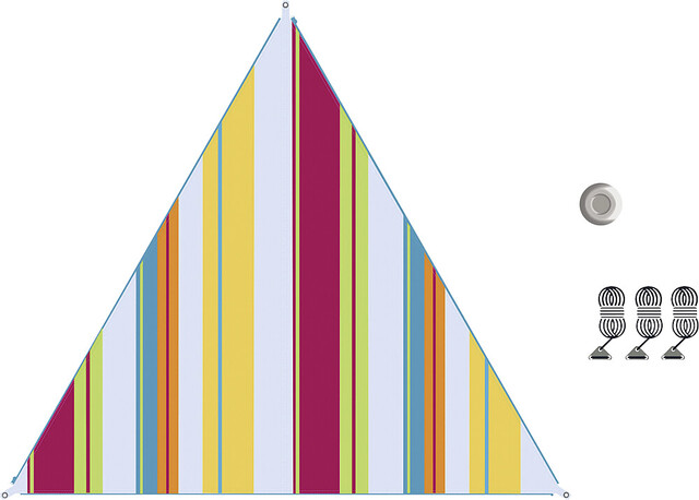 | Lieferumfang | Inklusive 1 Sonnensegel, 1 Tragetasche mit Kordelzug, 3 Abspannleinen mit Aluminium Dreilochspanner inklusive Beutel, Gestänge-Tasche, Grundplatte für optionales Gestänge |