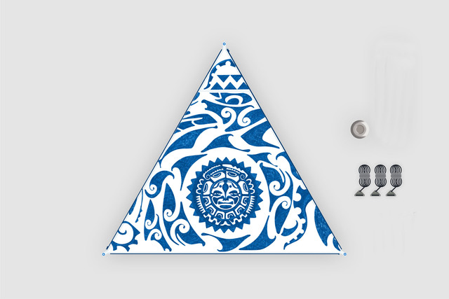| Lieferumfang | Inklusive 1 Sonnensegel, 1 Tragetasche mit Kordelzug, 3 Abspannleinen mit Aluminium Dreilochspanner inklusive Beutel, Gestänge-Tasche, Grundplatte für optionales Gestänge |