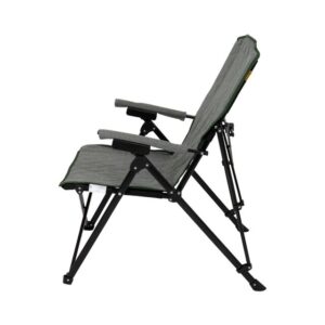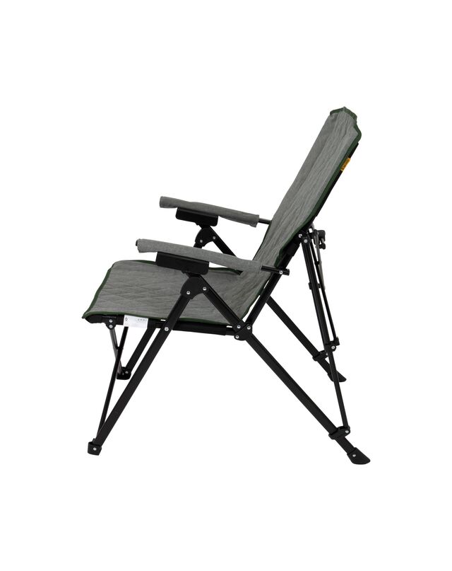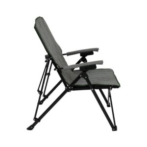 Ein komfortabler Klappstuhl mit trendigem Industrie-Look und gepolsterten Armlehnen. Die Rückenlehne ist in vier Positionen verstellbar, sodass Sie sowohl eine aktive als auch eine entspannte Sitzposition einnehmen können. Darüber hinaus ist die Polsterung aus luxuriösem Cationic gefertigt und mit einer angesagten Ziernaht versehen. Durch das schwarze Stahlgestell lässt sich der Stuhl leicht zusammenklappen. Kann draußen im Garten oder auf dem Campingplatz, zu Hause auf dem Balkon oder im Wohnzimmer verwendet werden!