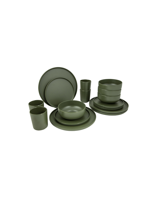 Dieses industrielle Patom-Geschirrset hat einen robusten Look. Das grüne Geschirr hat ein robustes Aussehen mit erhöhtem Rand. Neben dem schönen Design ist das Geschirr auch sehr leicht und robust. Das Geschirr ist gut für den Einsatz auf dem Campingplatz geeignet, da es praktisch unzerbrechlich, bruchsicher und kratzfest ist. Aber auch zu Hause lässt sich das Geschirr hervorragend verwenden. Das 16-teilige Set besteht aus hochwertigem 100% Melamin und ist spülmaschinenfest und lebensmittelecht. Das stilvolle Set ist für 4 Personen geeignet.