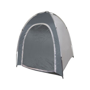 Ein geräumiges Lagerzelt. Ideal für die Lagerung von Fahrrädern, zum Lagern von Gegenständen, als Umkleidekabine oder als Küche. Ein Mehrzweckzelt, das kompakt zu transportieren und einfach aufzubauen ist. Das Lagerzelt ist aus robustem Polyester mit wasserdichter PU-Beschichtung (Wassersäule von 1000 mm) und einem wasserdichten Bodensegel (Wassersäule von 6000 mm). Die Zeltstangen bestehen aus 8,5 mm dickem glasfaserverstärktem Kunststoff. Das Dach hat versiegelte Nähte.