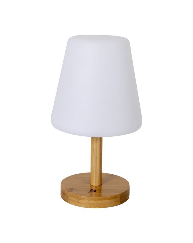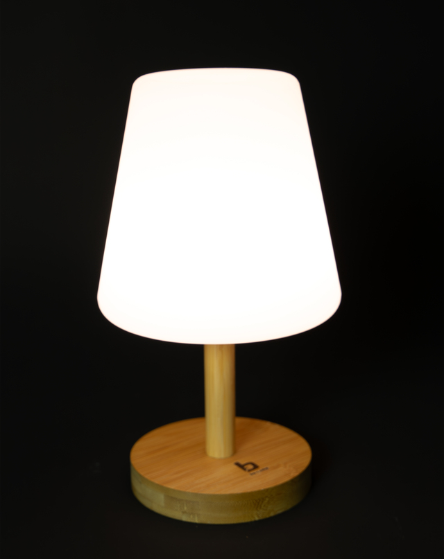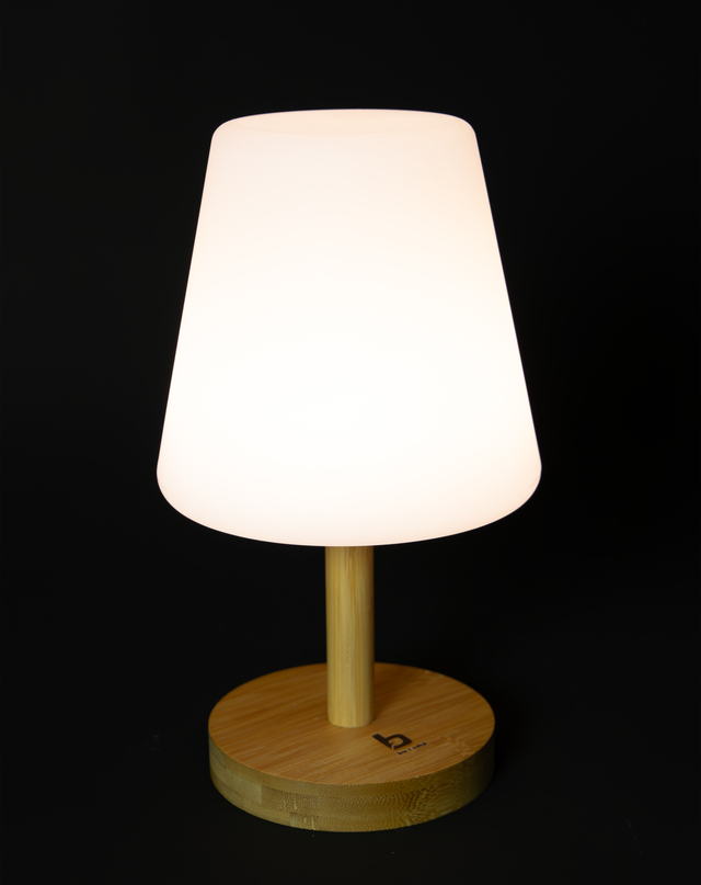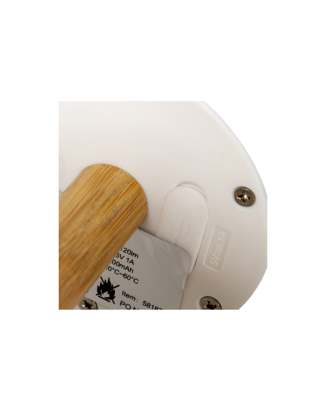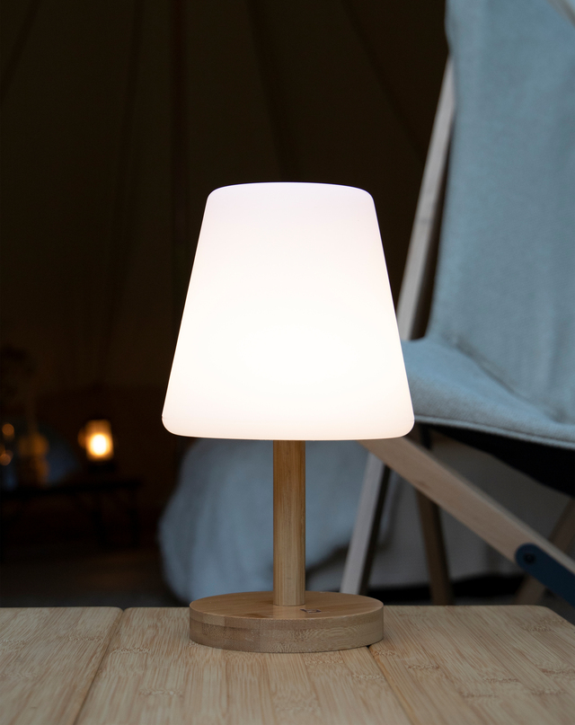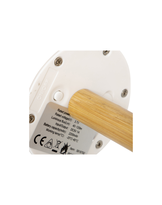 Eine klassische Tischlampe in einer trendigen Jacke. Gibt ein angenehmes Licht durch die LEDs mit einer warmen Lichtfarbe und dem weißen matten Farbton. Die Lampe kann in drei Lichtmodi verwendet werden: 20%, 50% und 100%. Ausgestattet mit einer stilvollen Bambusbasis. Der Akku kann über USB aufgeladen werden.