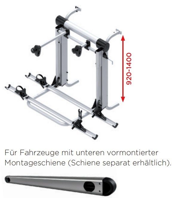 - Die Fahrradhalter können schnell von links nach rechts und von oben nach unten verstellt werden. Außerdem sind sie abschließbar (serienmäßig beim längsten Halter, optional beim anderen Halter