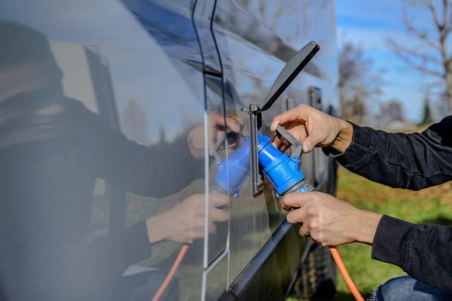 - Camping Kabel mit integrierter LED Spannungsanzeige, die auf einen Blick erkennen lässt, ob Spannung anliegt