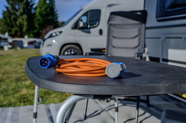 - Camping Kabel mit integrierter LED Spannungsanzeige, die auf einen Blick erkennen lässt, ob Spannung anliegt
