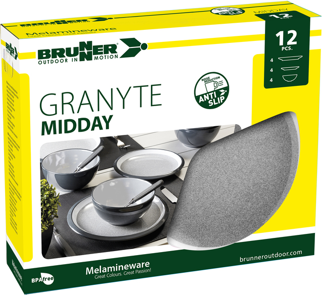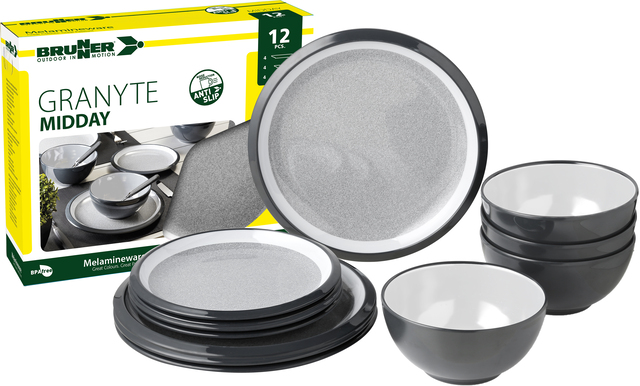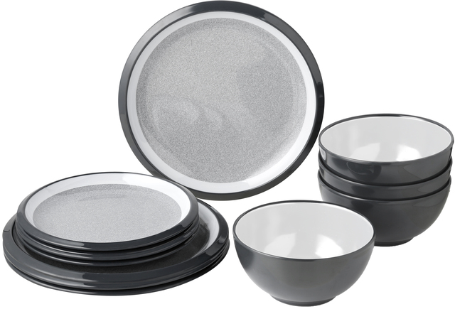 BRUNNER Geschirrset Melamin Midday Granyte 12-tlg