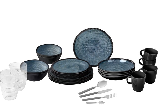 BRUNNER Geschirrset Melamin Venetian All inclusive VIP 40-tlg. Farbe schwarz / blau
