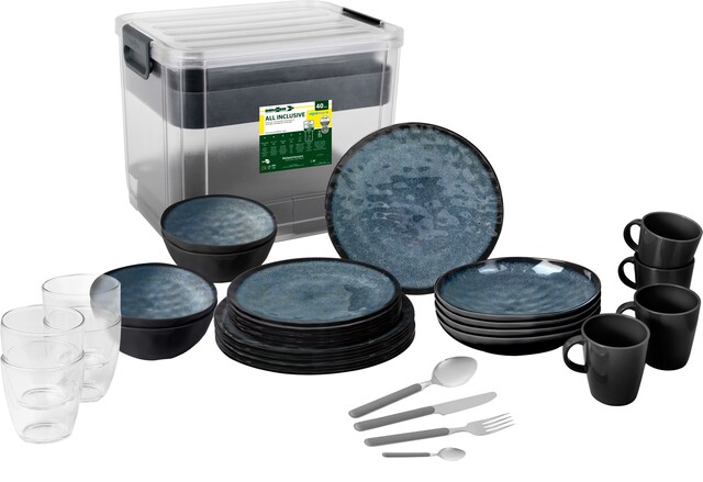 Dieses Geschirrset aus hochwertigem Stonetouch-Material alles was 4 Personen zu Tisch benötigen. Alle Geschirrteile sind mit Anti-Slip-Ring ausgestattet und finden in einer praktischen Transportbox mit Organizer-Schale bequem einen sicheren Aufbewahrungsplatz.