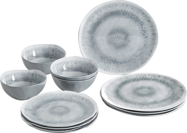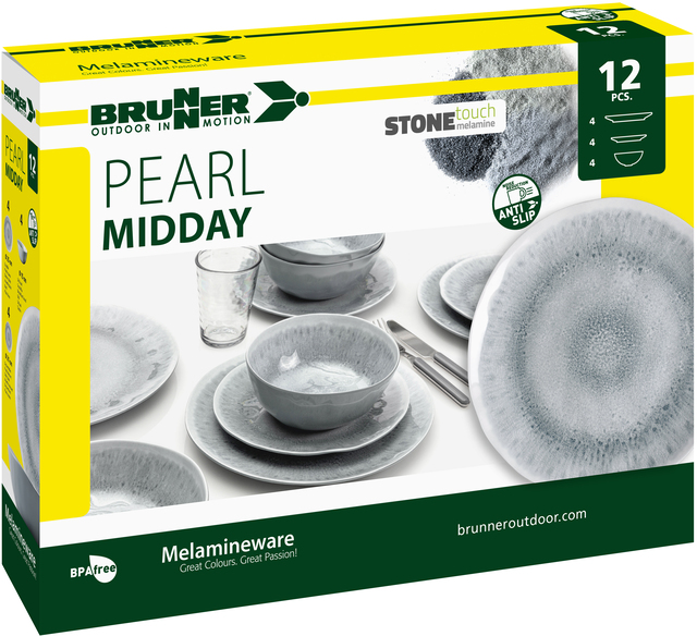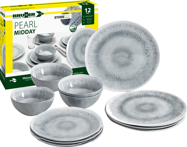 BRUNNER Geschirrset Midday Pearl 12 teilig je 4 x Ess-und Suppenteller 4 x Müslischüssel