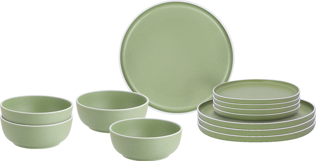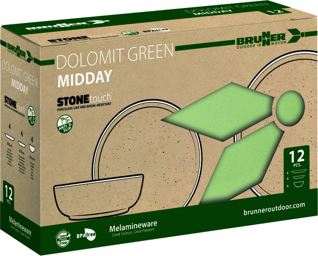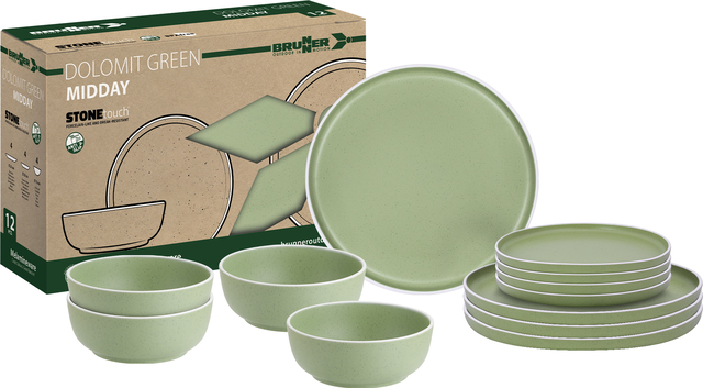 BRUNNER Midday dolomit 12 tlg. je 4 x Ess-, Dessertteller und Müslischale green