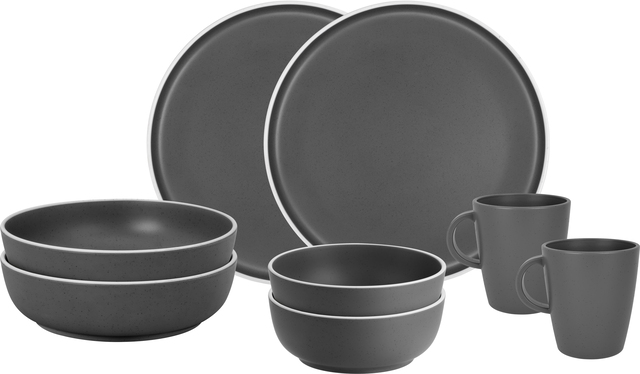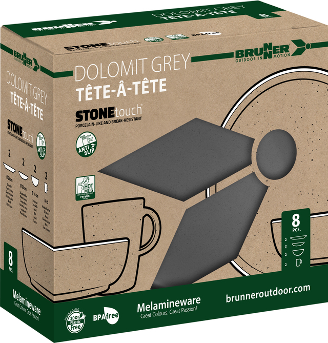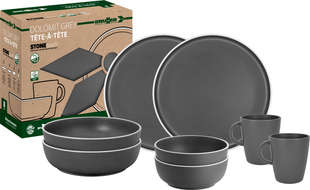 BRUNNER Set tête-à-tête Dolomit Grey 8 pcs je 2 x Ess- und Suppteller je 2x Becher und Müslisch.