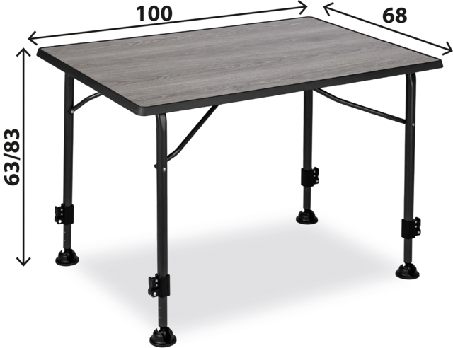 Die Tischmodelle der Linear-Serie sind fachmännisch mit einer wetterfesten und hitzebeständigen Sevelit-Tischplatte konstruiert und ideal für anspruchsvolle Camper, die Wert auf Qualität legen.