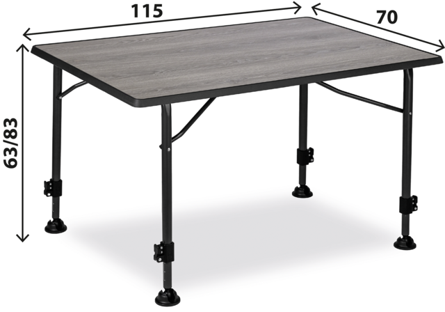 Die Tischmodelle der Linear-Serie sind fachmännisch mit einer wetterfesten und hitzebeständigen Sevelit-Tischplatte konstruiert und ideal für anspruchsvolle Camper, die Wert auf Qualität legen.