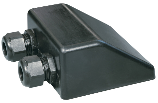 Die Gehäuse Dachdurchführung wird einfach mit Sikaflex auf das Fahrzeugdach aufgeklebt. Das Gehäuse ist schlag-, UV-, sowie witterungsbeständig und wasserdicht. Je nach Kabeldurchmesser stehen 3 Kabelverschraubungen (optional) zur Verfügung.