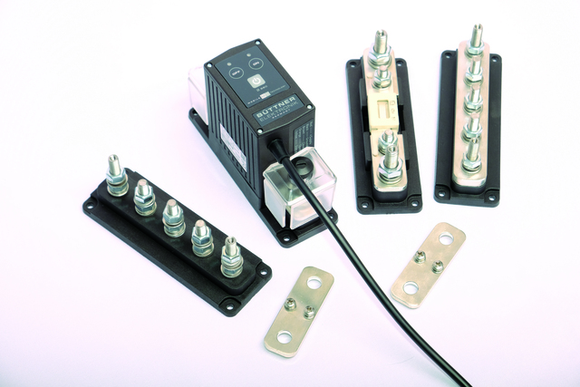 Einsetzbar als Einzelbauteil oder in Kombination in Hochlast-Verteiler-Set. Einzelpole isoliert mit 5 x M8 Gewindebolzen.