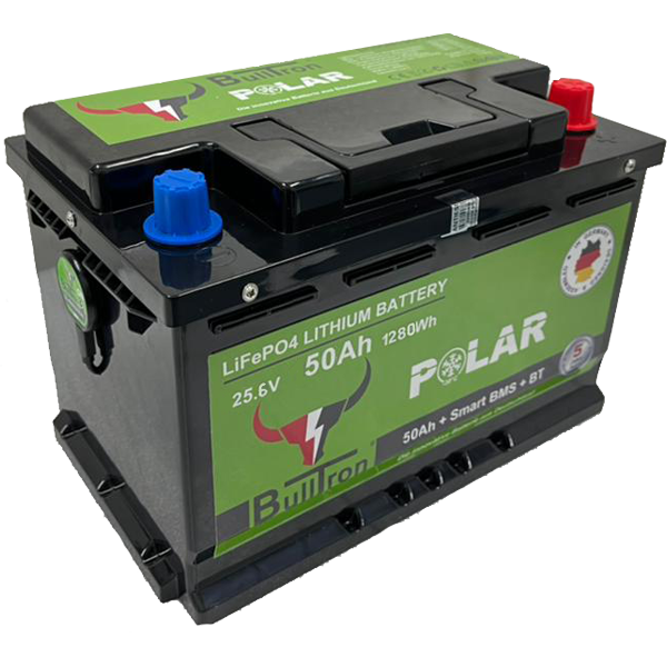BullTron Batterie Polar 50 Ah LiFePO4 25,6 V Akku mit Smart BMS, Bluetooth App, aktiver Balancer und Heizung