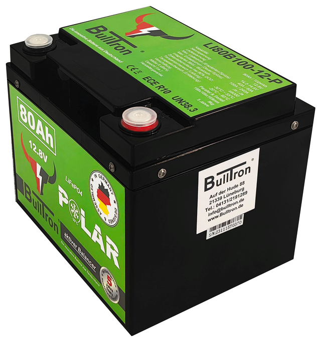 BullTron Batterie Polar 80 Ah LiFePO4 12,8 V Akku mit Smart BMS, Bluetooth App, aktiver Balancer und Heizung