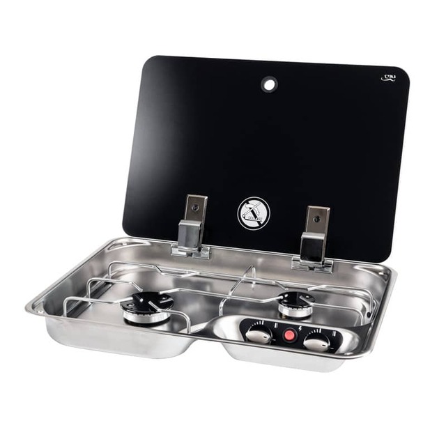 CAN Einbau Kocher 2-flammig mit Gasabschaltung Farbe silber