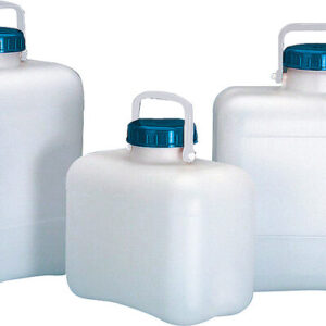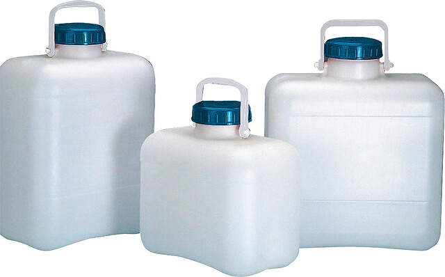 Bügel-Weithalskanister aus für Trinkwasser zugelassenem Polyethylen und mit einem ¾” Innengewinde für einen Ablasshahn.