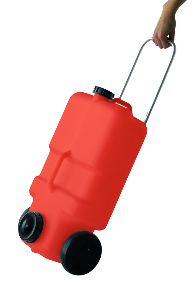 Geeignet für den bequemen Transport von Frisch- bzw. Abwasser. Mit 2 Verschraubungen für DIN61/NW96 Anschlüsse. Passend für alle Zubehörteile (z. B. Befüllschlauch, Hahnverschluss) mit 61er Gewinde. Mit ausziehbarem Zugbügel und großen, sehr stabilen Kunststoffrädern. Aus stabilem HDPE Polyethylen.