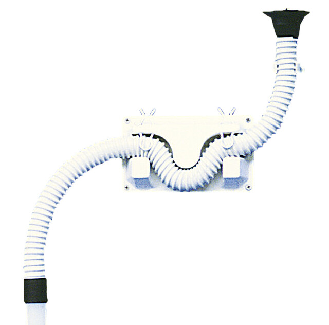 Wandhalter für 19 – 25 mm Schlauch, als Geruchsverschluss. Gegen Herausfallen durch Klammern gesichert.