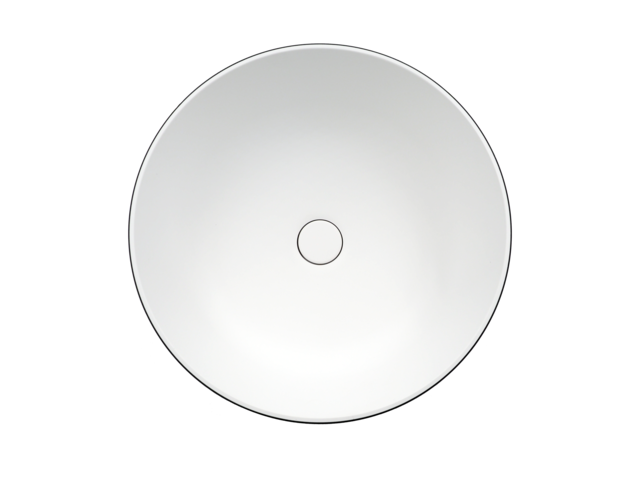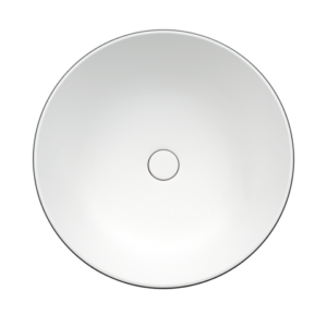 Rundes Waschbecken aus Ocritech mit Druckablauf.