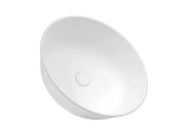 Rundes Waschbecken aus Ocritech mit Druckablauf.