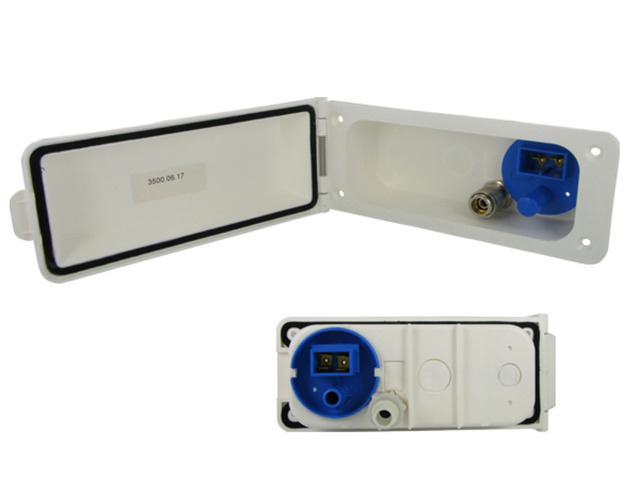 Caravan-Versorgungsklappe für den Anschluss einer Tauchpumpe zur Wasserversorgung aus einem externen Kanister