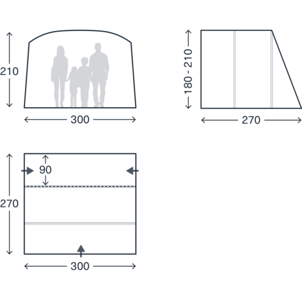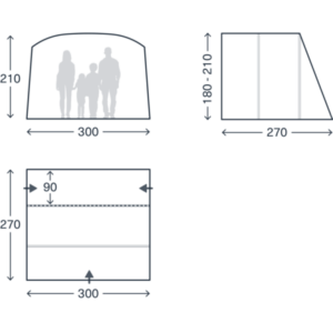 Stabilität und Ergonomie: Die niedrige Bauweise reduziert die Windanfälligkeit des Zeltes. Die Geometrie ist so konzipiert, dass trotz der kompakten Außenmaße eine maximale Kopffreiheit im Innenraum gewährleistet bleibt.