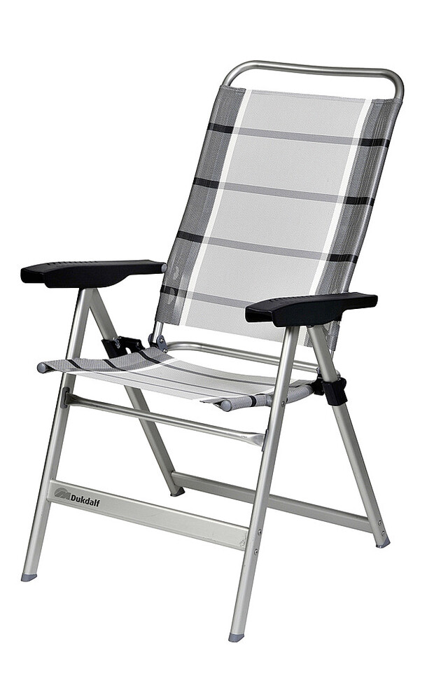 Der stabile und kompakte 10-fach verstellbare Stuhl mit ergonomisch geformter Armlehne, Rückenlehne und Sitzfläche. Mit einem ultra starken witterungsbeständigem Textil.